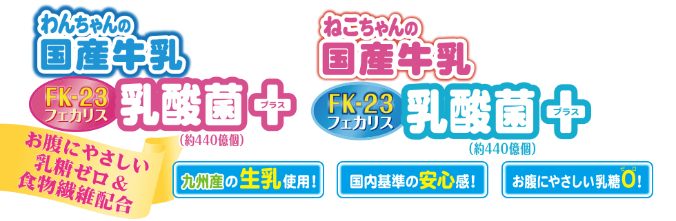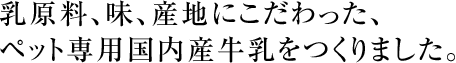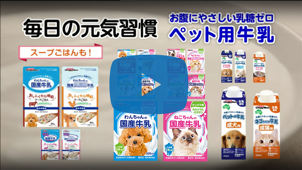 牛乳の脂肪分が気になって、与えることを躊躇しておられるオーナー様に配慮し、低脂肪タイプも。牛乳本来のおいしさはそのままに、乳脂肪分をおさえました。