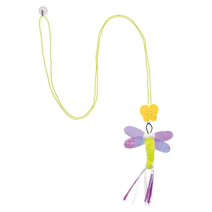 ・とんぼがお部屋で飛び回る!ゴム紐で吊るす猫じゃらし。