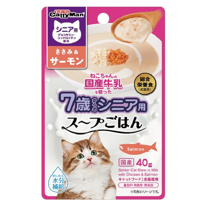 猫ちゃんの国産牛乳を使ったスープごはん ささみ&サーモン シニア用