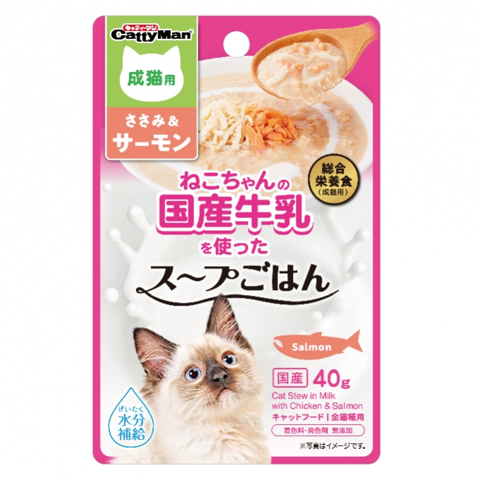 猫ちゃんの国産牛乳を使ったスープごはん ささみ&サーモン 成猫用