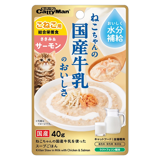 猫ちゃんの国産牛乳を使ったスープごはん ささみ&サーモン こねこ用