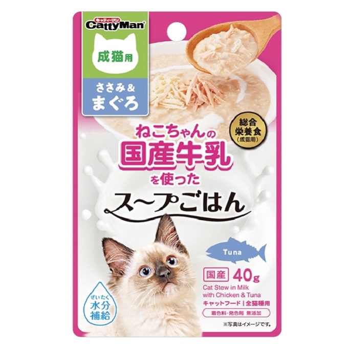 猫ちゃんの国産牛乳を使ったスープごはん ささみ&まぐろ 成猫用