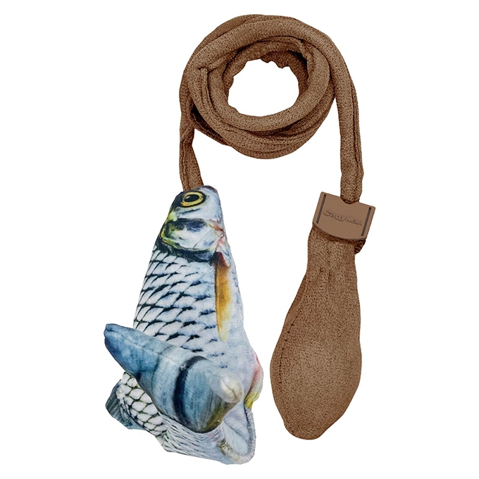 ポンプを握って空気で動く、さかなモチーフの猫玩具。