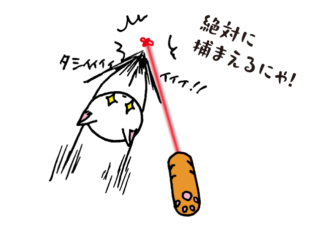 基本的に家の中で過ごす猫ちゃんの運動不足解消に最適。高輝度レーザーを使用して、明るい室内でもはっきりくっきり見えるよう工夫しています。飼い主さんは座ったままで、猫ちゃんを思いっきり走らせることができる優れものです。