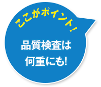 厳しく安全を守ります。 - 各製造工程だけでなく包装後の製品も、