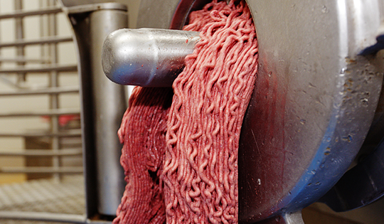 お肉の温度上昇と菌の繁殖を防ぐため、チルドのままお肉を挽きます。