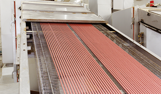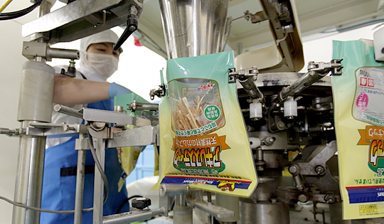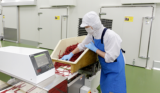 食べやすいカタチに成型し、高温で加熱し殺菌します。 -
