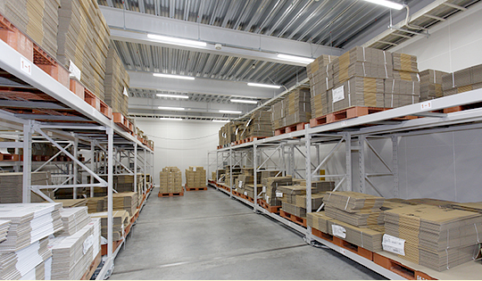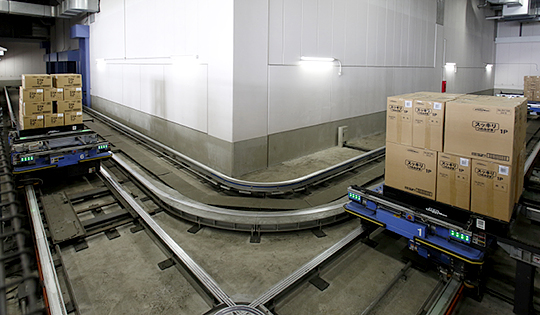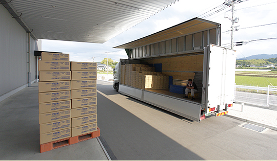 すべての検査をクリアした製品は、丁寧に箱詰めされた後、物流を担う関西ロジスティクスセンターへと運ばれます。 -